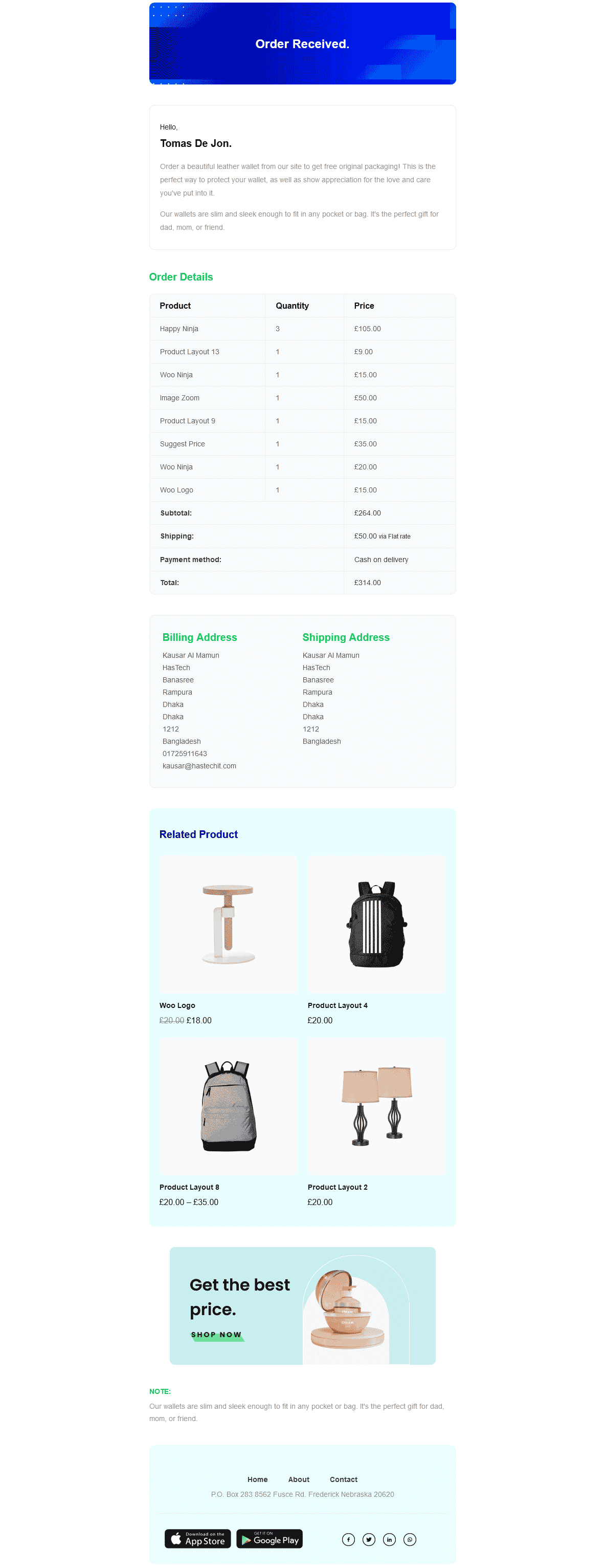 See how ShopLentor transforms the standard WooCommerce emails into powerful marketing tools.