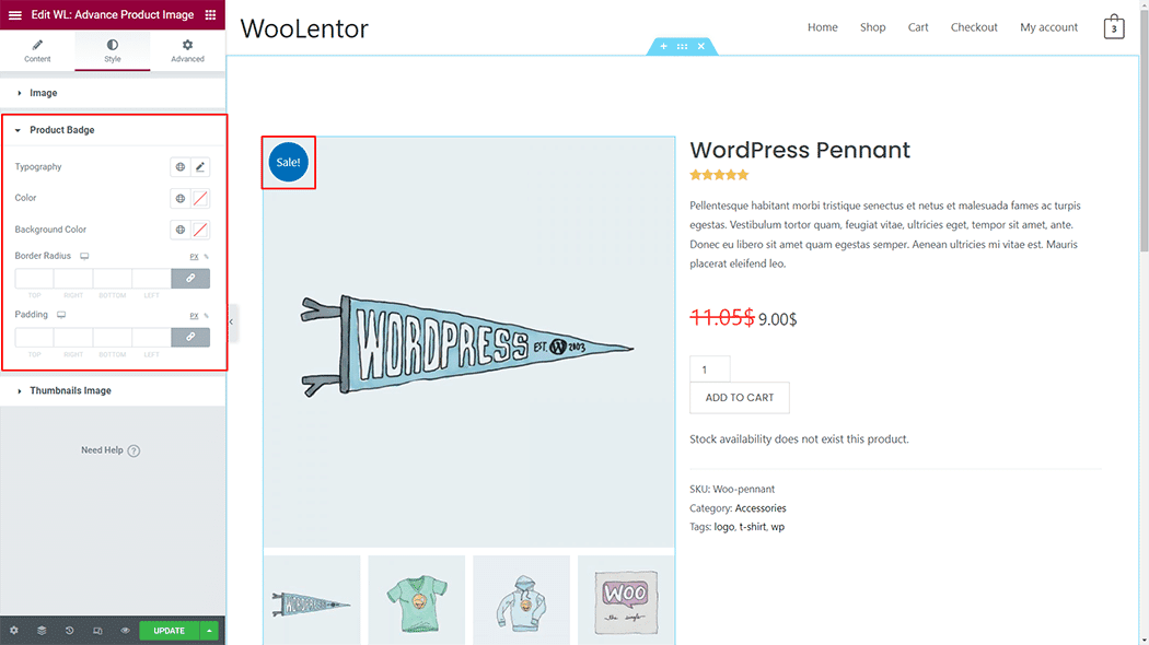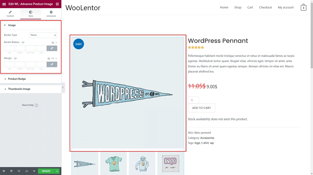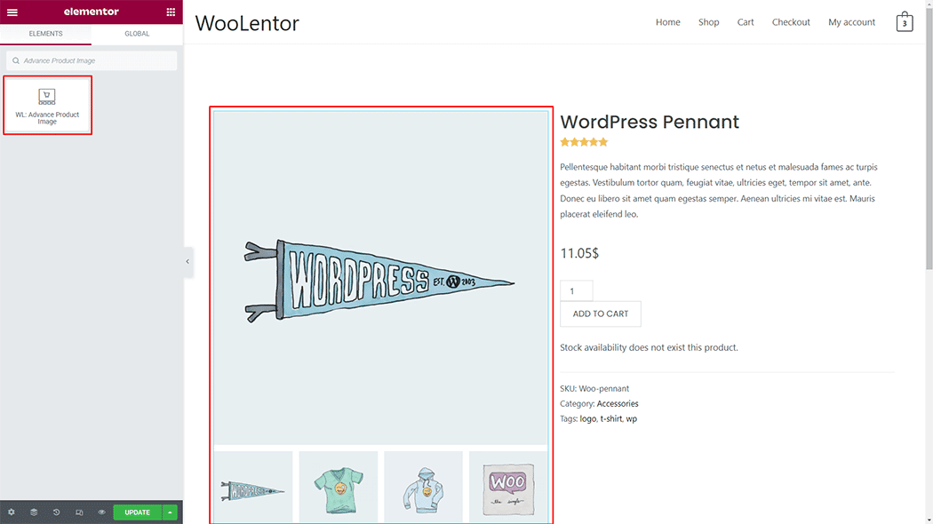 On the Product Single page, “WL: Advance Product Image†widget is used for the Product Single page on WooCommerce.