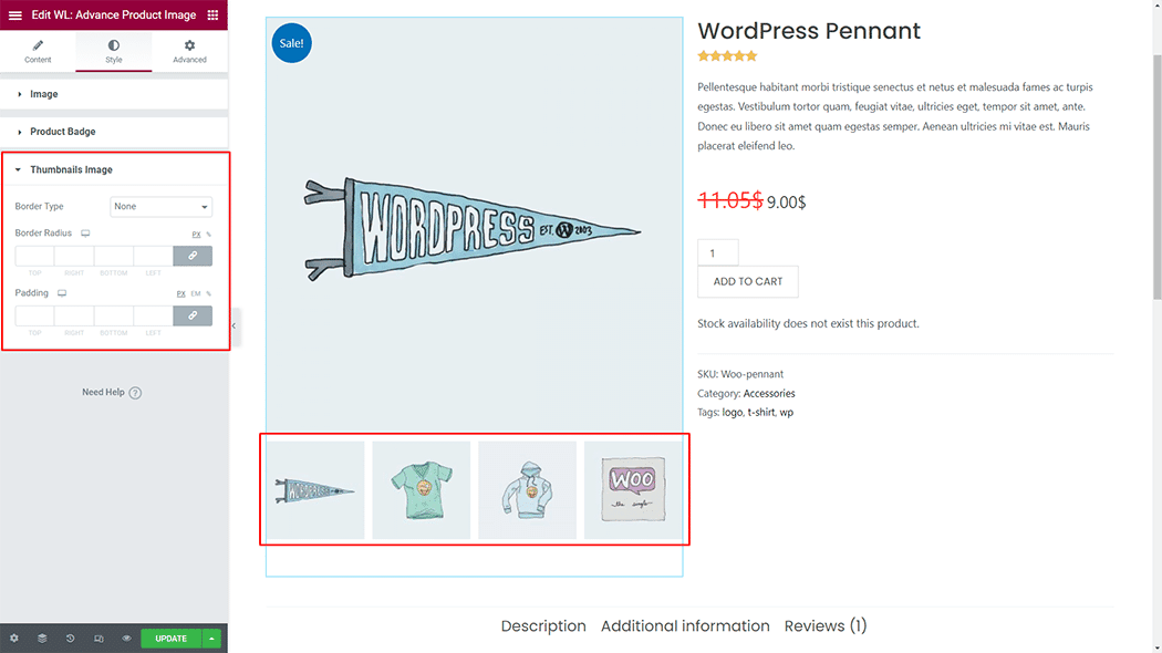 The “Advance Product Image†widget is designed for WooCommerce’s Product Single page. It is mainly used for displaying the product image on the Product Single page. The widget can be used with any product type and is responsive to any screen size.
