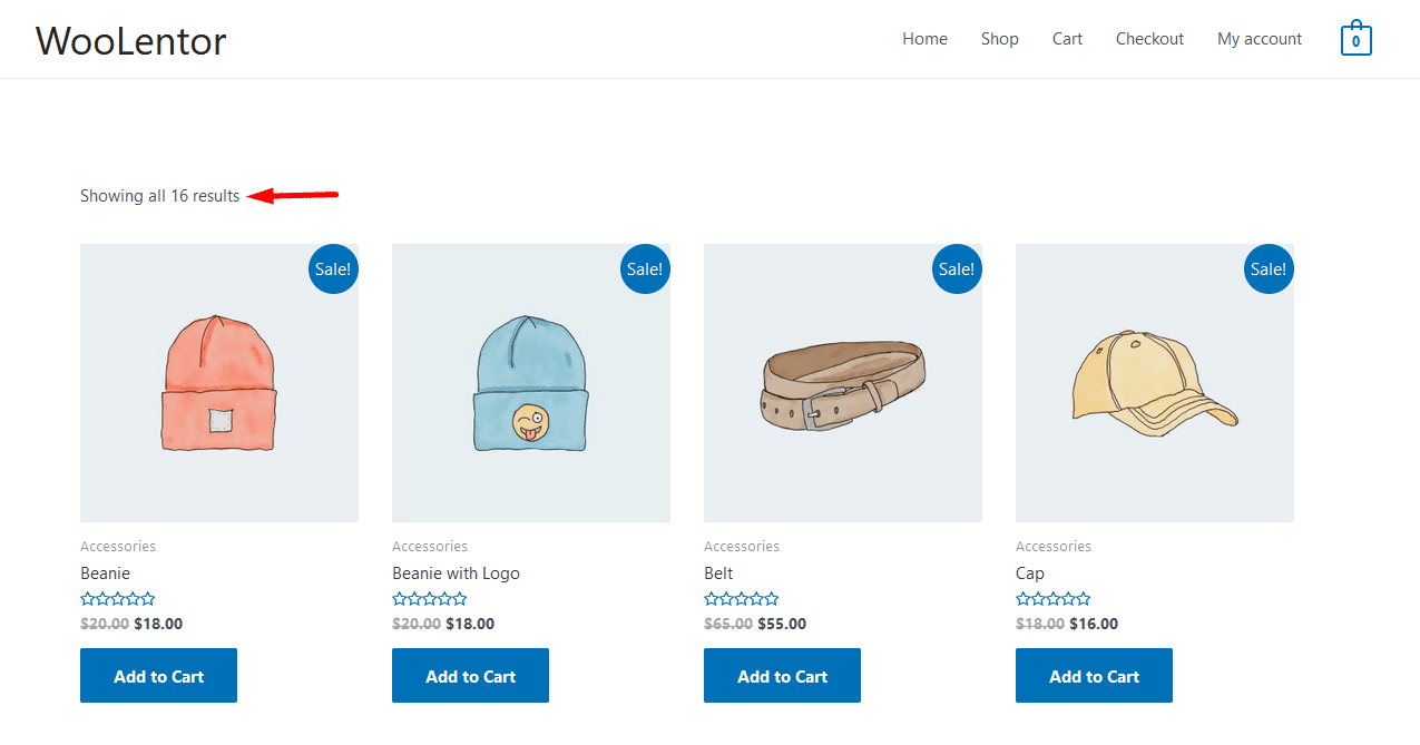 On the Archive Page or Shop Page, “WL: Archive Result Count” widget has used to display the number of products.