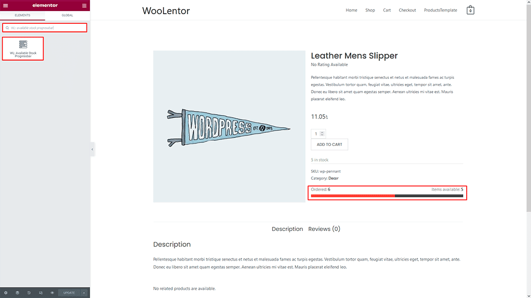 Available Stock Progressbar for Elementor