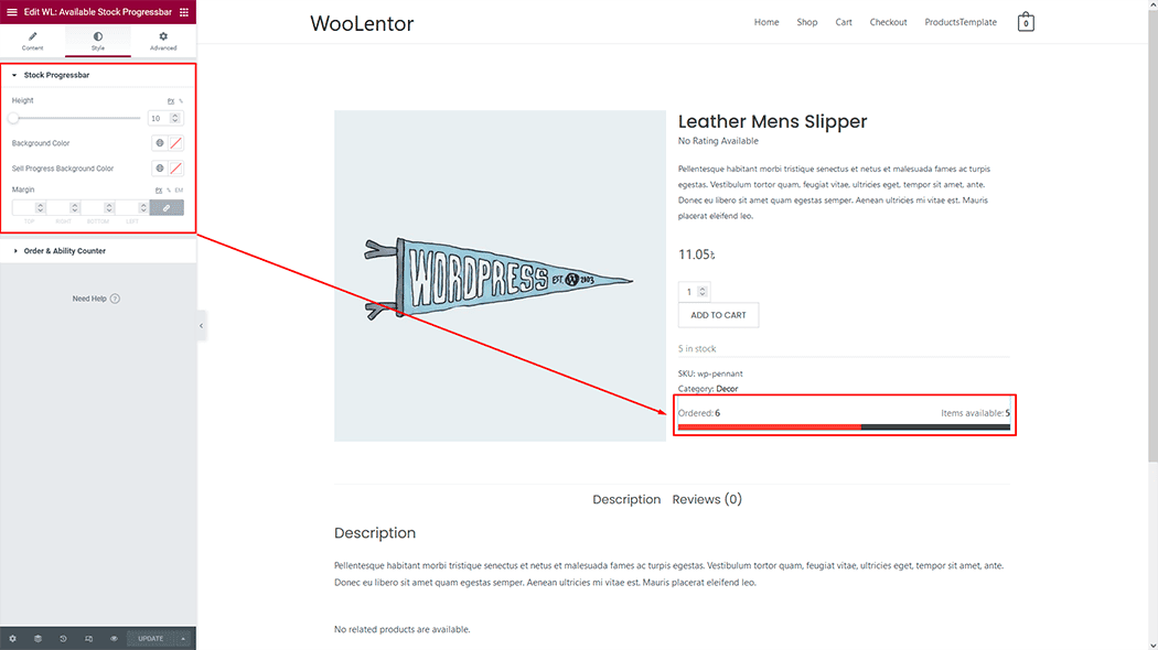How to add WooCommerce Stock Progress Bar using WooLentor