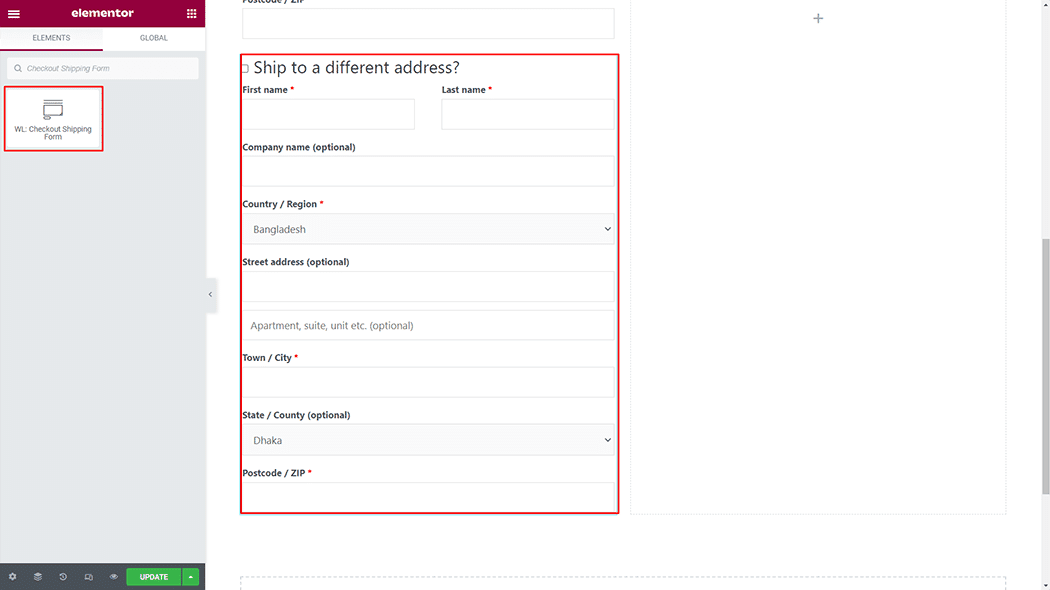Checkout Shipping Form for Elementor
