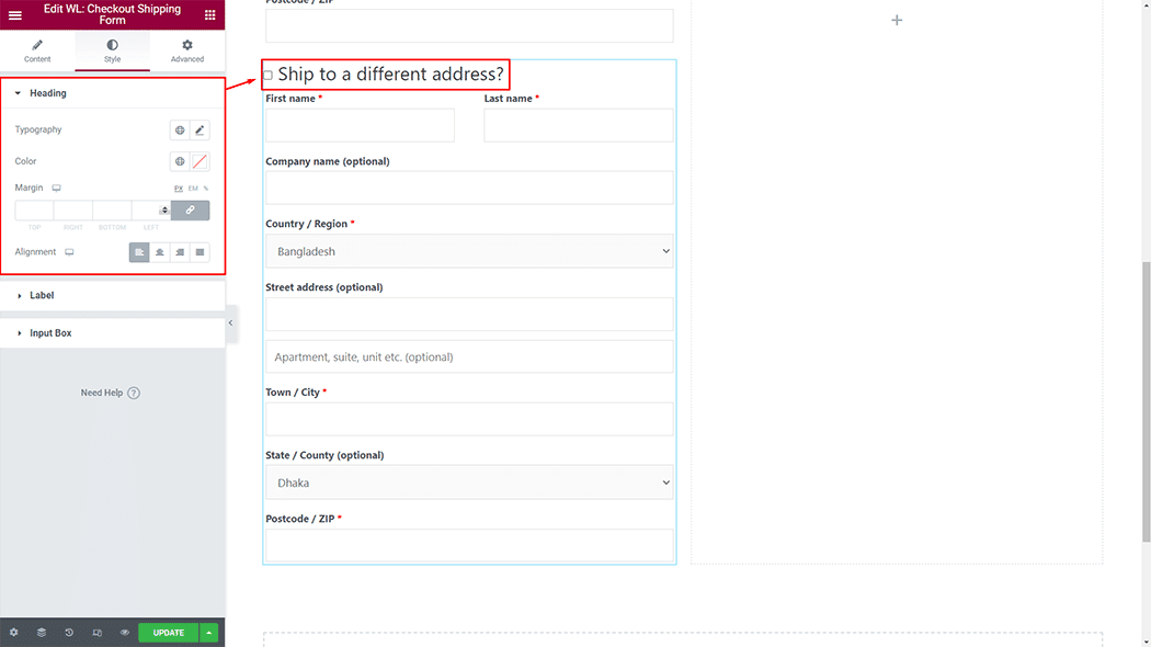 Heading: You can change the Checkout Shipping Form Heading style as you need