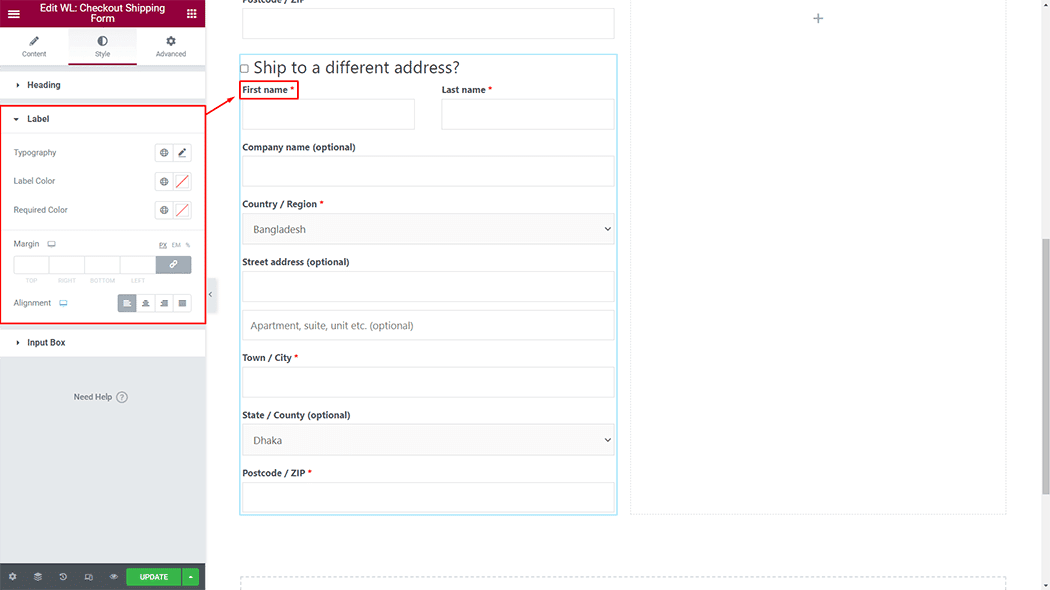 Label: You can change the Checkout Shipping Form Label style as you need