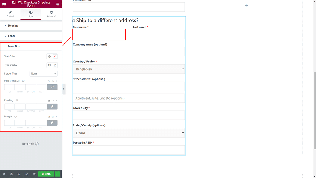 Input Box: You can change the Checkout Shipping Form Input Box style as you need