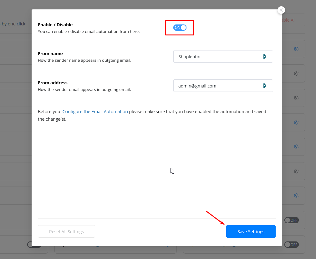 Set the name of your Template in the popup box for template settings. Then click the Set Default checkbox after selecting the desired Email Template type from the dropdown list of type. Now click the Save Settings button to save your settings.