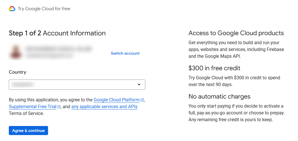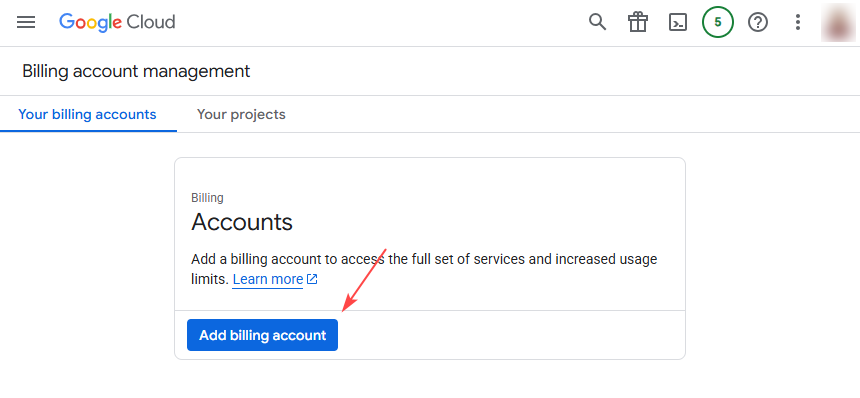 - Once logged in, you’ll be prompted to create a Billing Account.