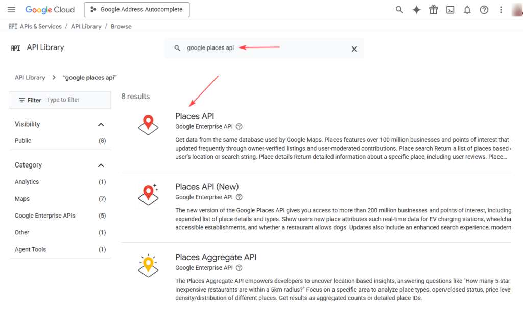 To avoid unexpected charges, make sure you understand how the Places API consumes credits and regularly monitor your usage from the Billing → Credits section in the Google Cloud Console.