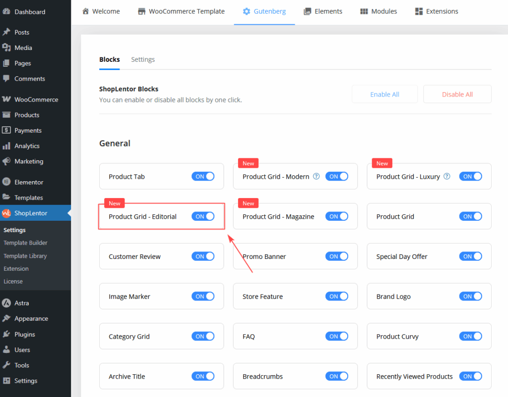 - Go to Dashboard → ShopLentor → Settings → Gutenberg