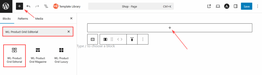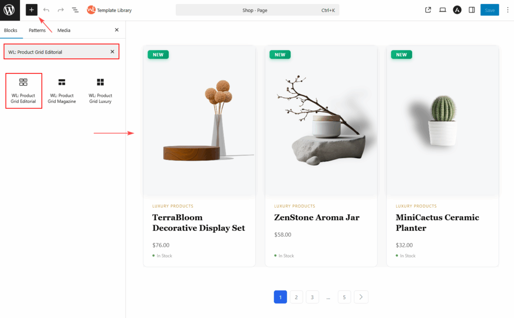 Step 2: How to Add the Product Grid – Editorial Block in Gutenberg