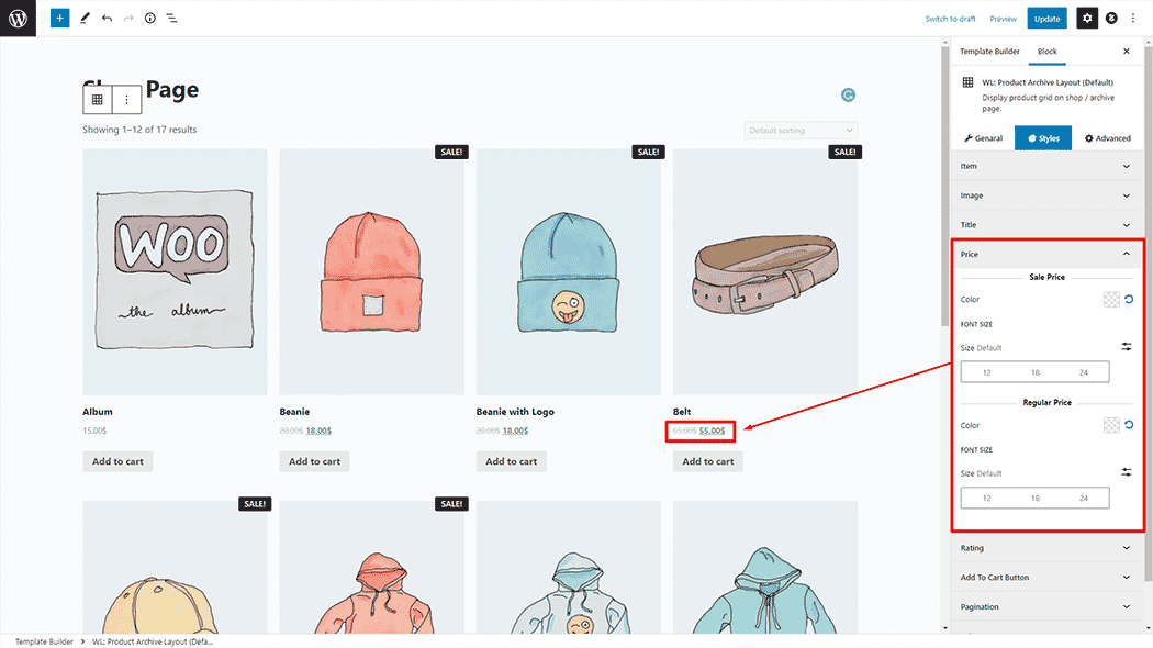 Price: You can change the Product Archive Layout (Default) Price style as you need