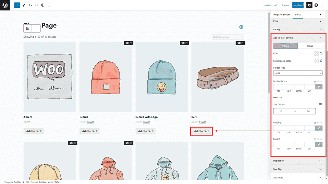 Visit the Shop Page Template to Preview.