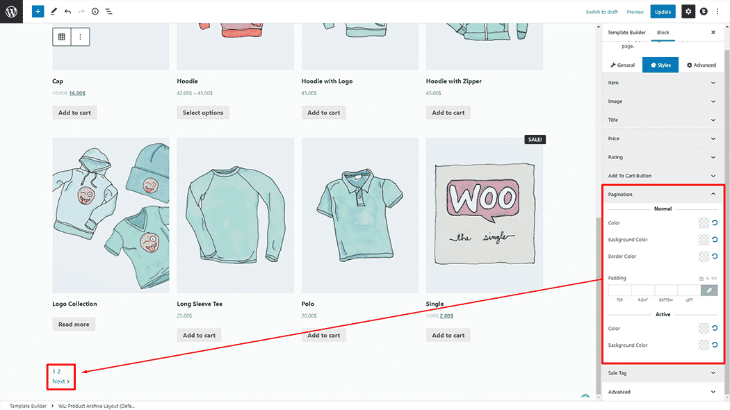 Pagination: You can change the Product Archive Layout (Default) Pagination style as you need