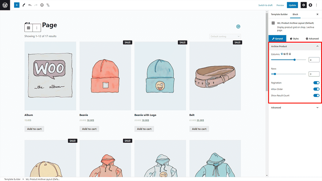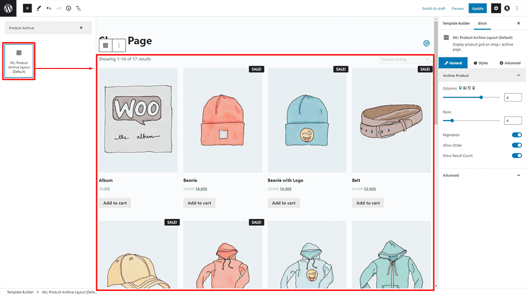 Product Archive Layout Block for Gutenberg