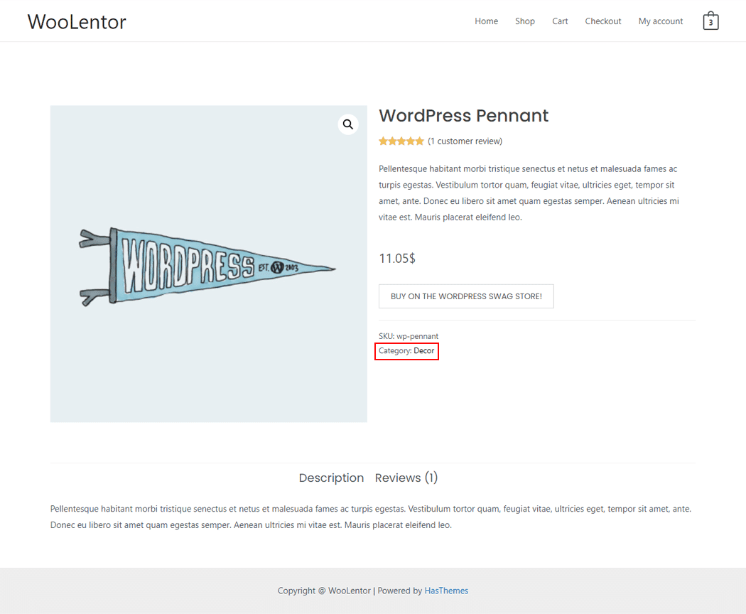 On the Product Single page, “WL: Product Categories†widget is used for the Product Single page on WooCommerce.