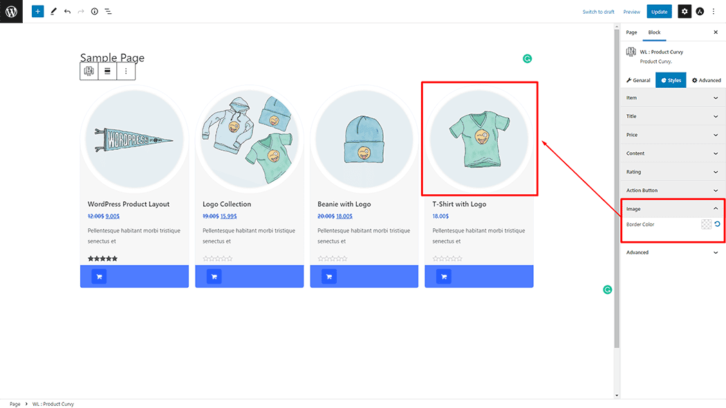 Image: You can change the Border Color style of the Product Curvy as needed.