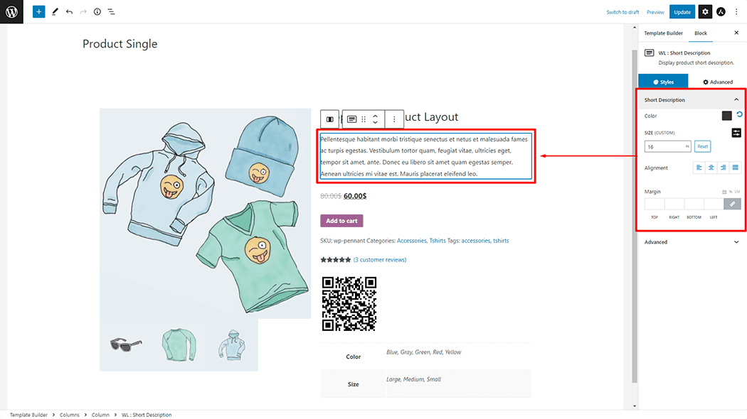 Style: You can change the Color, Size, Alignment, and Margin Style Product Short Description as you need