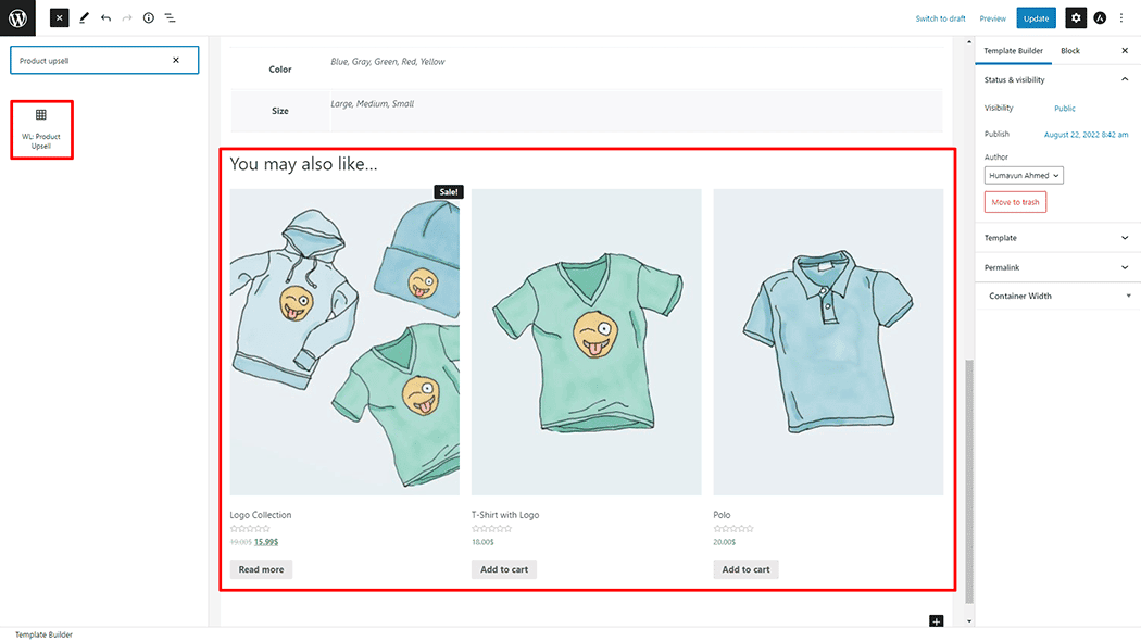 Drag and drop the WooLentor Product Upsell Block onto the Single Product Template.