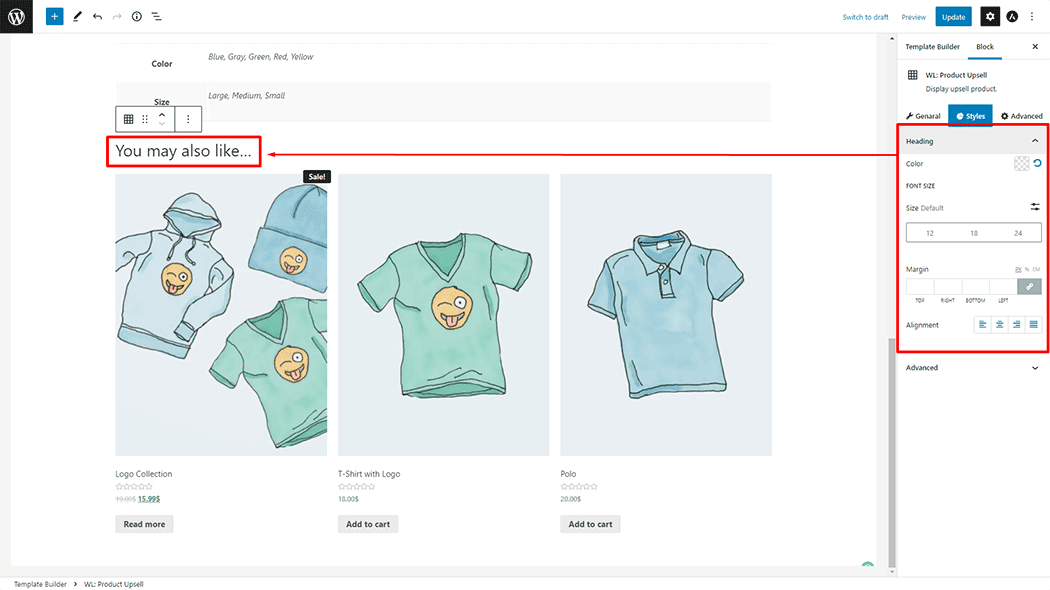 Step 3: How to customize the Product Upsell Block?