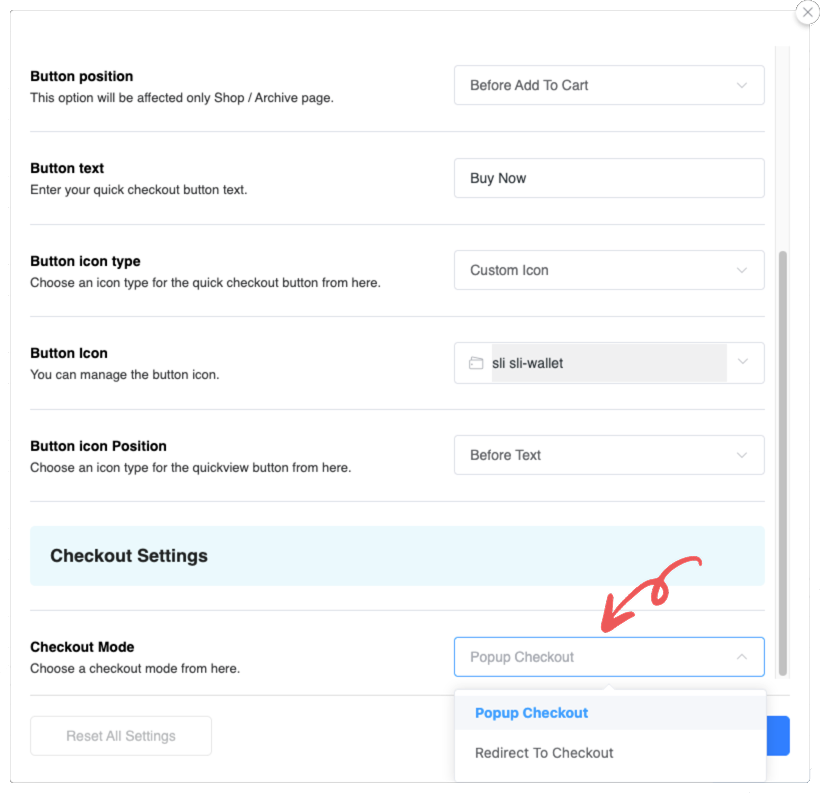 - Popup Checkout: Opens a quick checkout page in a popup window, allowing users to stay on the same page while completing their purchase.