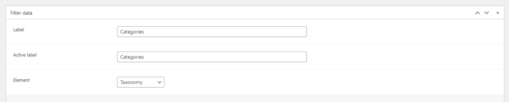 Element: Choose the type of product filter element you want to use. UpFilter offers various options, including Taxonomy, Attribute, Author, Price Range, Search Input, and Sorting.
