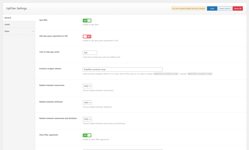 - Ajax Filter: Enable or disable Ajax filtering functionality with a simple toggle.