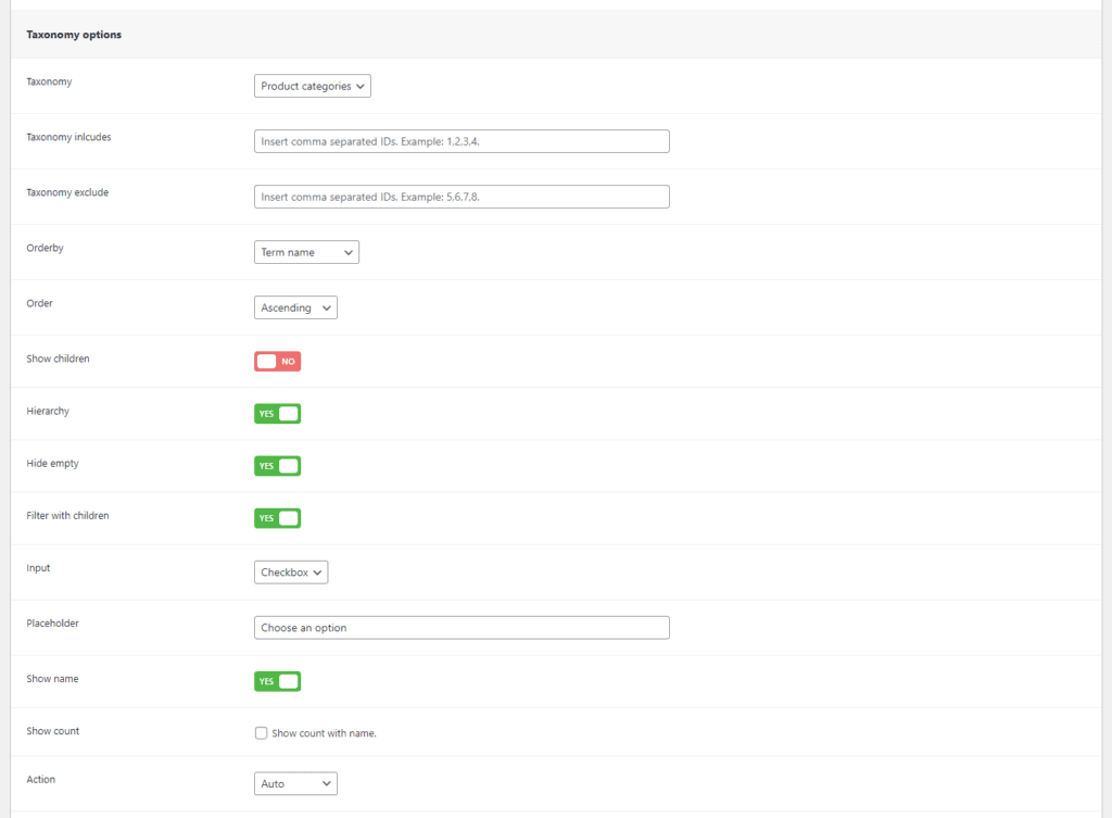 Filter with children: Choose whether to filter with children’s terms (Yes or No).