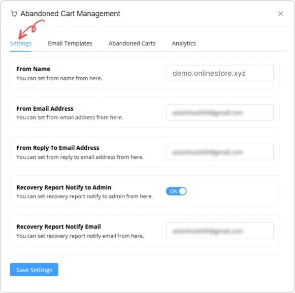 Configure the Abandoned Cart module with simple settings that start recovering lost sales immediately.